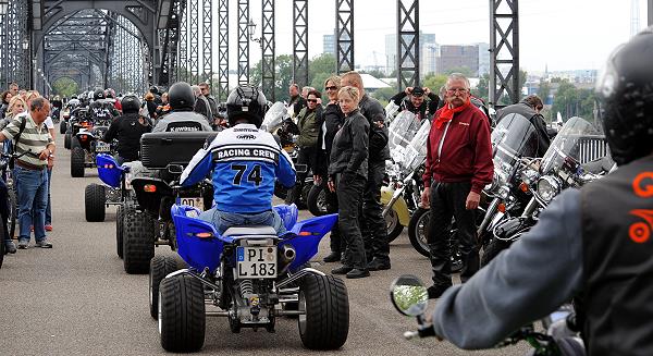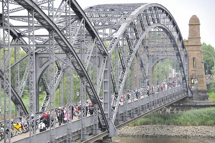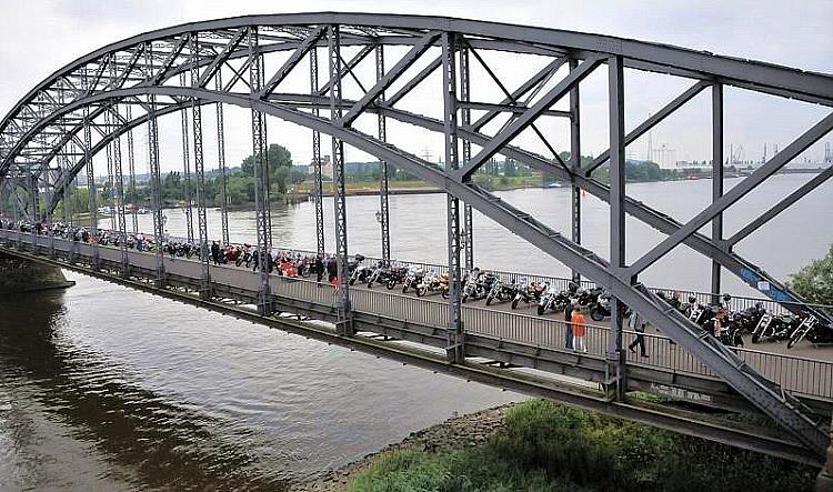 ![]() Soviel Verkehr hat es sicher auf der Alten Harburger Elbbrücke lange nicht mehr gegeben und trotz der Verkehrsdichte gab es keinerlei Probleme. Man muss auch einmal erwähnen, dass auf der gesamten Britsch keine achtlos weggeworfenen Coladosen oder gebrauchte Wurstpappen zu finden waren. So sind sie, die Biker, man nimmt Rücksicht ! |