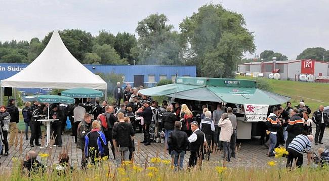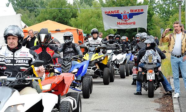 Die Wetterprognose für Sonntag, den 12.07.09, war wenig positiv und als Veranstalter fürchteten wir in diesem Jahr mit der Benefiz-Sternfahrt im wahrsten Sinne des Wortes baden zu gehen. Umso größer war die Freude, dass 215 Bikes 17 Quads und rund 400 Besucher den Weg zur „Britsch“ nach Hamburg-Harburg fanden. Zweitweise wurden Schwenkgrill und Getränkewagen förmlich „überrannt“ und die Charity-Pins waren schnell ausverkauft. ![]() Das Biker eine Solidargemeinschaft sind, die vor allem dann zur (Spenden-) Hilfe bereit ist wenn es um eine erkennbar gute Sache geht, konnte man am Sonntag wieder auf der „Britsch“ erleben. |