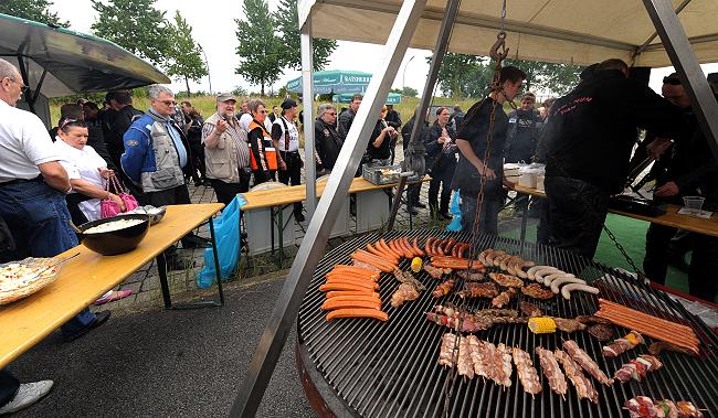 Trotz langer Schlangen und Wartezeiten an der Futterkrippe kam kein Unmut auf, man hatte Zeit für Benzingespräche mit dem Nachbarn und ...was soll's, jeder der heute hinter dem Tresen stand, tat das unentgeltlich und für die gute Sache und das verdient Anerkennung. ![]() An dieser Stelle geht ein dicker Dank dafür an Hotte und seine Crew von ![]() ![]() |